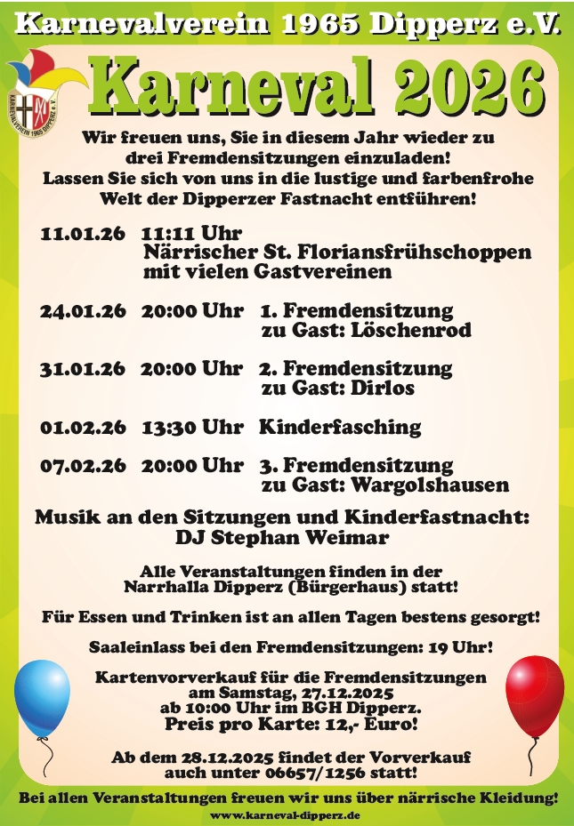 27.12.25. 10:00 Uhr: Kartenvorverkauf im BGH Dipperz